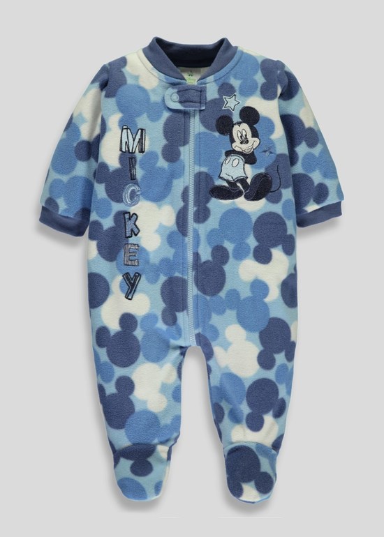 Флисовый слип фирмы Disney baby от Matalan. Флис мягкий, застежка-молния с защитой-хлястиком на шее. Голубые, белые, темно-синие Микки Маусы по всему слипу, аппликация Микки Маус на груди. размеры 6-9мес (68-74), 9-12мес (74-80), 690руб