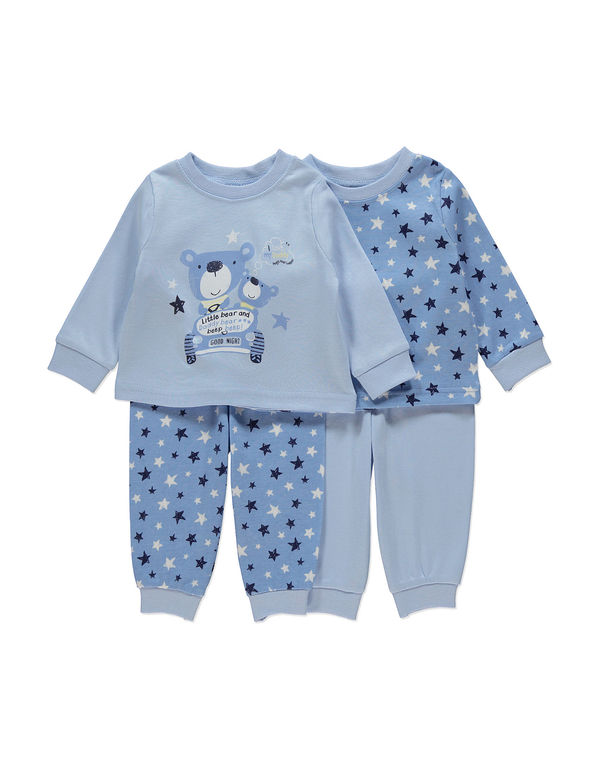 Пижама с длинным рукавом фирмы George, манжеты на рукавах и штанишках. Голубая кофточка с мишками на машине + темно-голубые штанишки со звездами