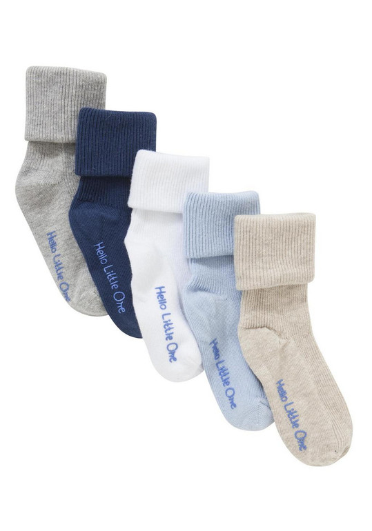 Носки фирмы F&F 5штук в комплекте. В синие, белые, серые, бежевые, голубые с надписью "Привет, малыш!" Состав Состав Navy, white blue: 78% Cotton, 20% Nylon, 2% Elastane, Oatmeal and grey: 53% Cotton, 25% Polyester, 20% Nylon, 2% Elastane. размер 15-18, 19-22, 430руб