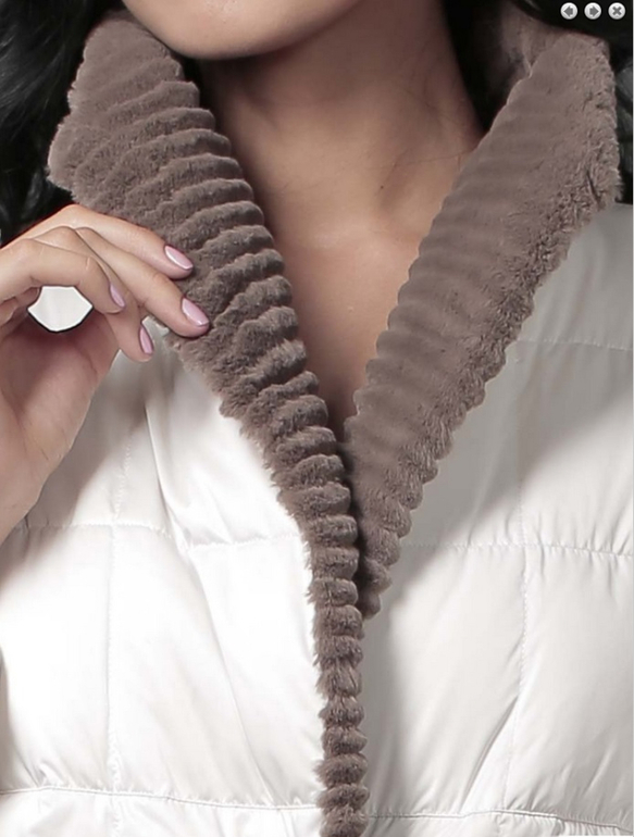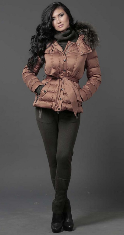 №6 Модный пуховик на каждый день. Приталенный силуэт прекрасно подчеркивает стройность фигуры, спереди расположена удобная застежка-молния. Модель украшена мехом рекса.