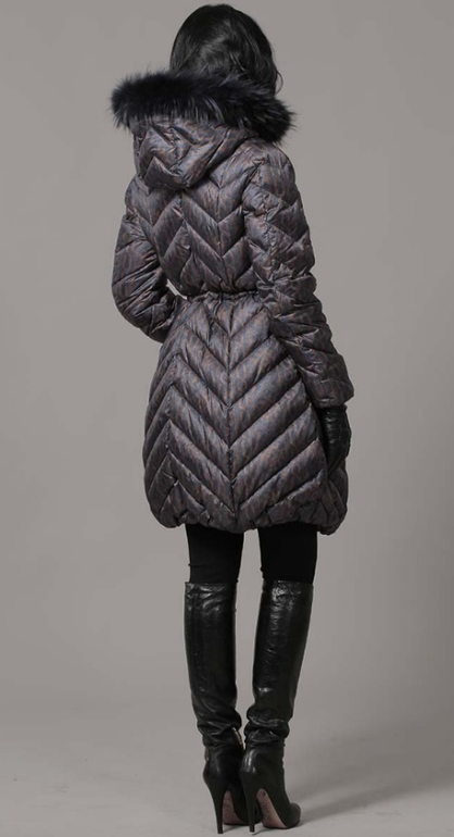 №25 Элегантный пуховик на каждый день. Силуэт трапеция - самый актуальный тренд этого сезона. Спереди расположена удобная застежка-молния. Капюшон модели украшен мехом енота, который придает ему безупречный внешний вид.Мех съемный