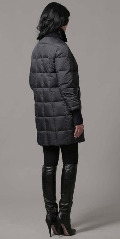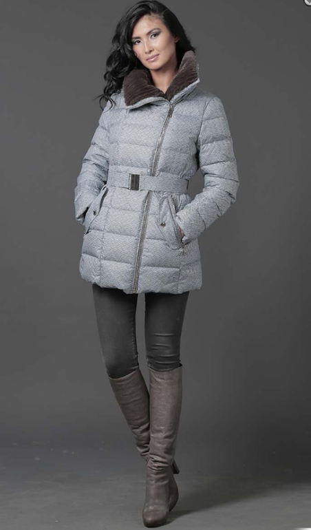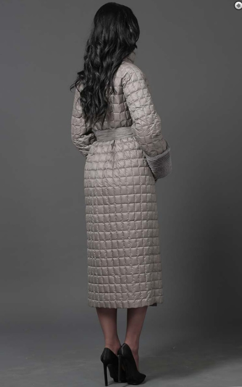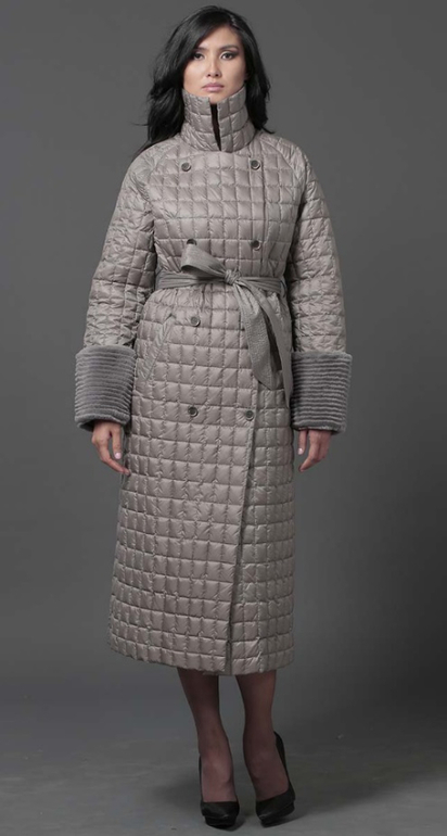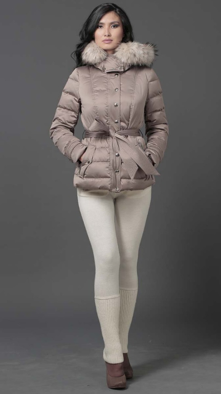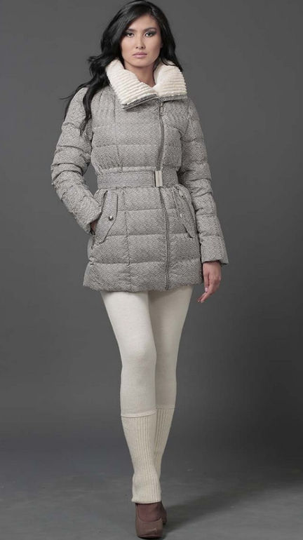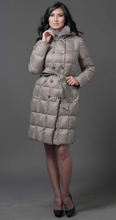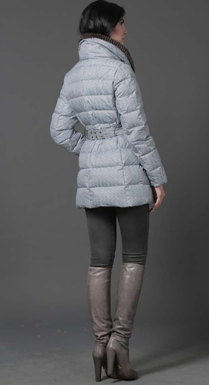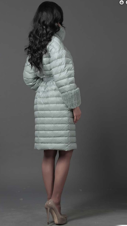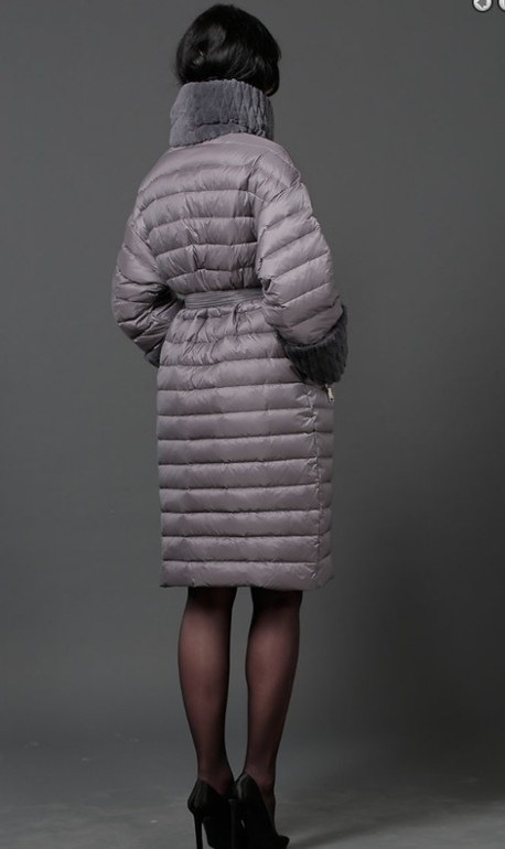 №26 Элегантный пуховик на каждый день. Модель прямого силуэта застегивается на кнопки. Изделие украшено мехом рекса. Особая технология обработки придает манжетам безупречный внешний вид. Пуховик дополнен удобным поясом.Мех съемный