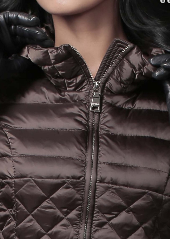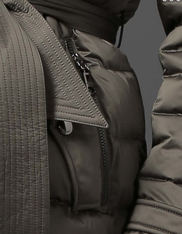 | Наполнитель: 90% пуха, 10% пера. Основная ткань: 100% полиэстер. Подклад: 100% нейлон. Мех : Енот |