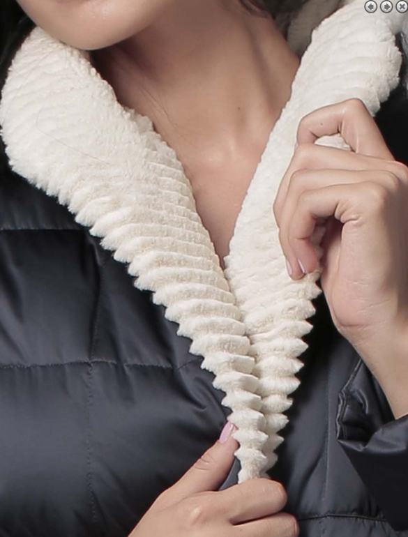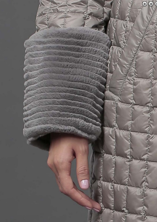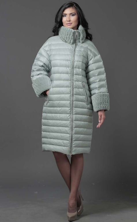№18 Модный пуховик на каждый день. Прямой силуэт слегка заужен к низу, спереди расположена удобная застежка-молния. Воротник и манжеты модели украшены мехом рекса. Особая технология обработки придает воротнику безупречный внешний вид. Мех съемный