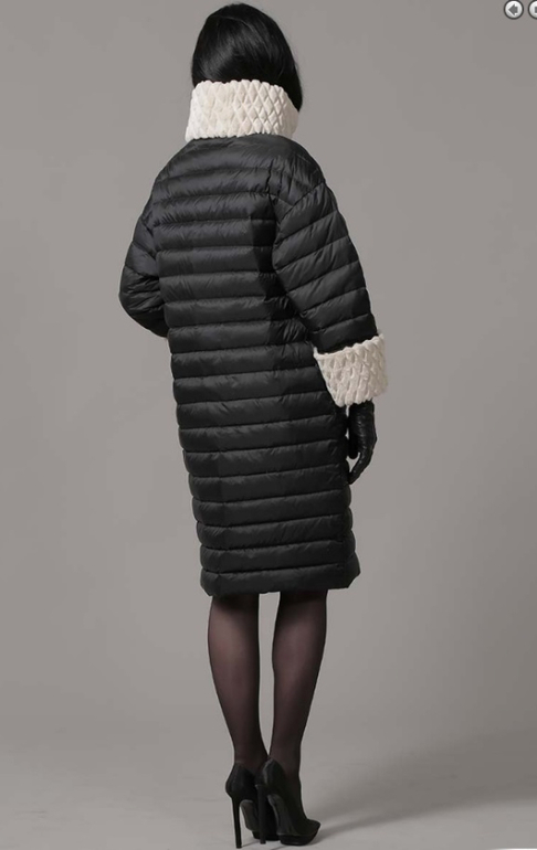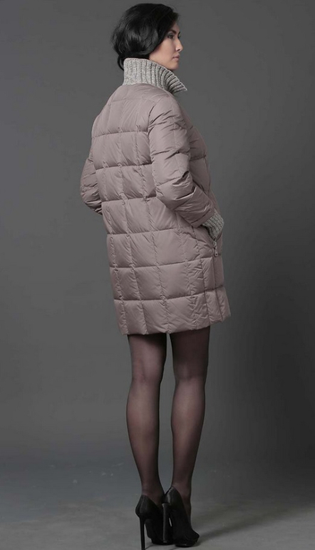 | Модный пуховик на каждый день. Модель приталенного силуэта, застегивается на молнию. Дополнен вставками из трикотажа на капюшоне, манжетах и вставкой на передней планке.Трекотаж не съемный. Длина средняя |