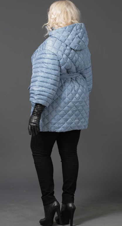 №7 Оригинальный пуховик на каждый день с расширенной размерной градацией. Спереди расположена застежка-молния. Модель идет в комплекте с манжетами и капюшоном из трикотажа.