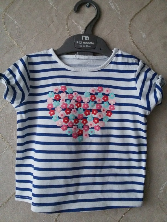 1.Футболка Mothercare розовая с сердечком. 150 руб.