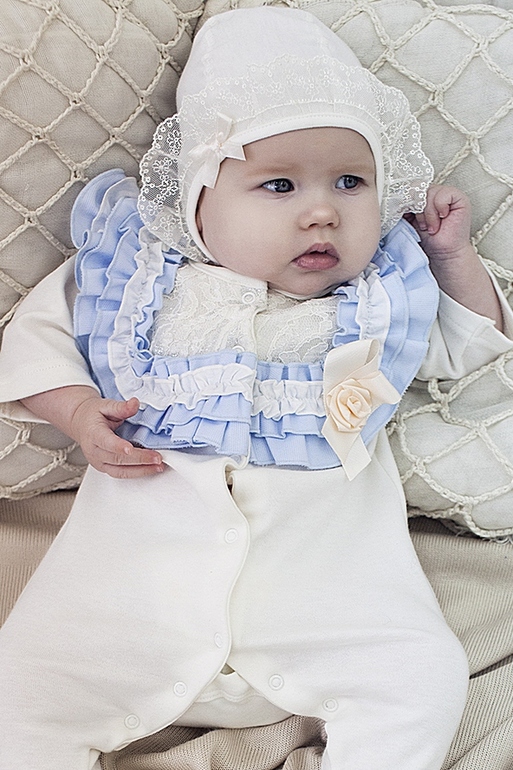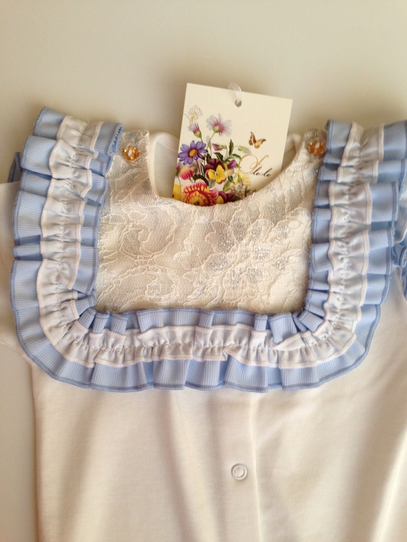 46) ЗВ04.06 Комбинезон для девочки с голубой отделкой (ВНИМАНИЕ: в реальности рюш меньше и нет розочки, реальное фото прикрепляю), 1200 руб.