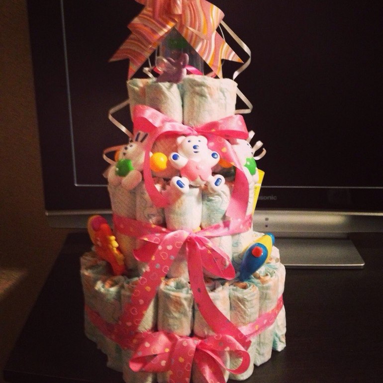 Торты из подгузников -прекрасный презент для семьи новорожденного!