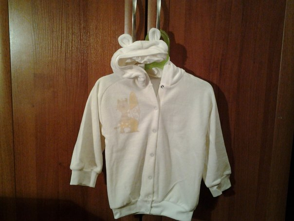 350 руб. Рост 80,86. Большемерит. Велюровая кофта на пуговицах с капюшоном и
