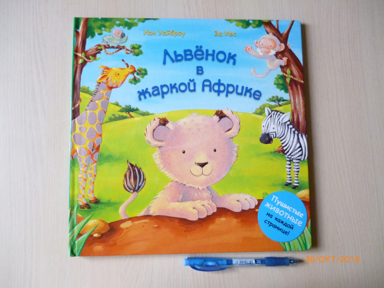 6. Львенок в жаркой Африке, Мозаика-Синтез. Книга большого формата с тактильными вставками, все главные животные на ощупь бархатистые!