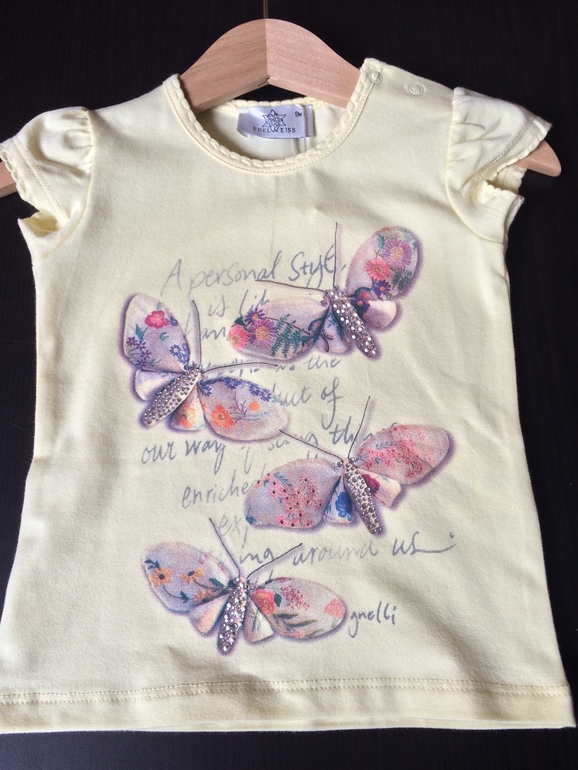20. Футболка бабочки цвет желтый арт. 10718 Размеры: 9 месяцев, 12 месяцев, 18 месяцев , 2 года, 3 года, 4 года, 5 лет. Турция состав хлопок. Цена 800