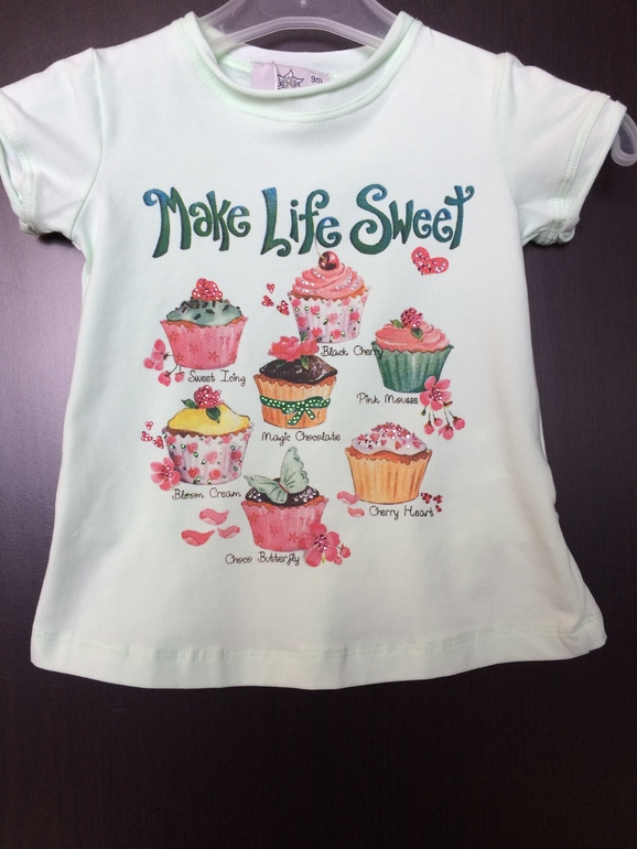 30. Футболка Sweet Cherry фисташковый. арт. 10719 . Размеры: 9 месяцев, 12 месяцев, 18 месяцев , 2 года, 3 года, 4 года, 5 лет . Турция состав хлопок. Цена 750