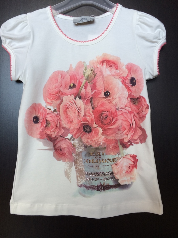 39. Футболка розы цвет ваниль арт. 10714 . Размеры: 4 года, 5 лет, 6 лет, 8 лет, 10 лет, 12 лет. Турция состав хлопок. Цена 850