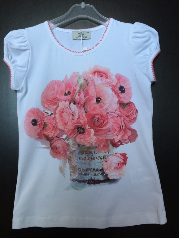 37. Футболка розы цвет белый арт. 10714 . Размеры: 8 лет, 8 лет, 10 лет, 10 лет, 12 лет. Турция состав хлопок. Цена 850