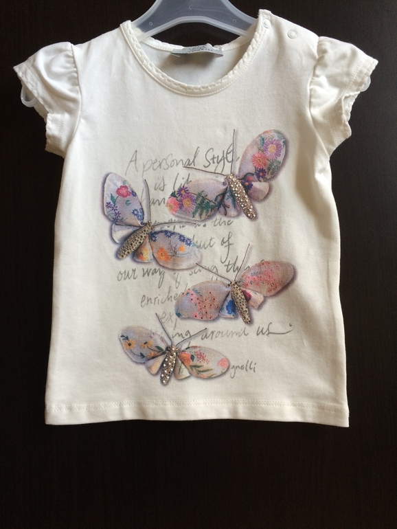 18.Футболка бабочки цвет ваниль арт. 10718 Размеры: 9 месяцев, 9 месяцев, 12 месяцев, 18 месяцев , 2 года, 3 года, 4 года, 4 года , 5 лет, 5 лет. Турция состав хлопок. Цена 800