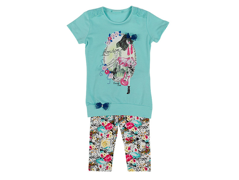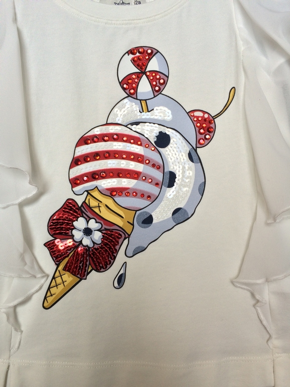 11. Комплект Мороженное футболка , капри арт 50627. Размеры: 2 года , 2 года , 3 года , 4 года, 4 года, 5 лет, 6 лет, 7 лет, 8 лет . Турция состав хлопок. Цена 2500