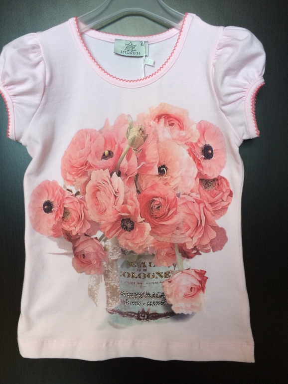 38. Футболка розы цвет розовый арт. 10714 . Размеры: 4 года, 5 лет, 6 лет, 8 лет, 10 лет, 12 лет. Турция состав хлопок. Цена 850