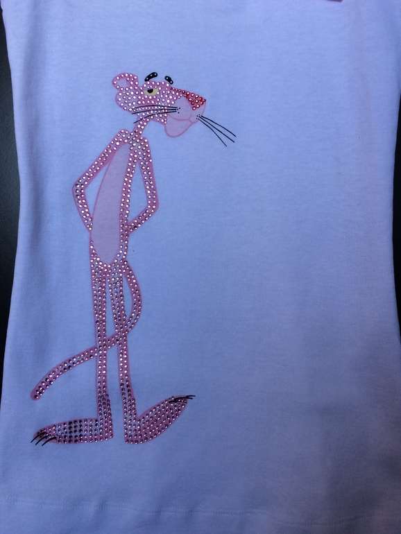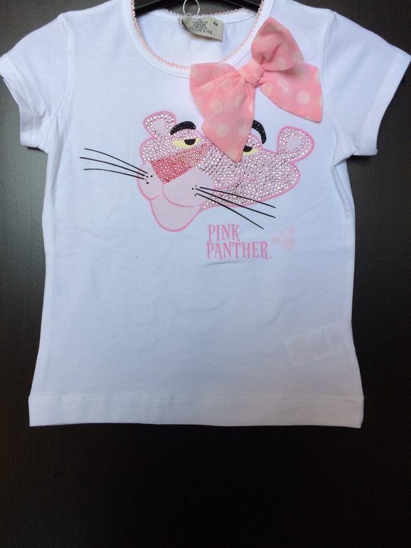 24. Футболка Розовая пантера белый арт. 10731 Размеры: 2 года, 4 года, 5 лет, 7 лет Турция состав хлопок. Цена 1200