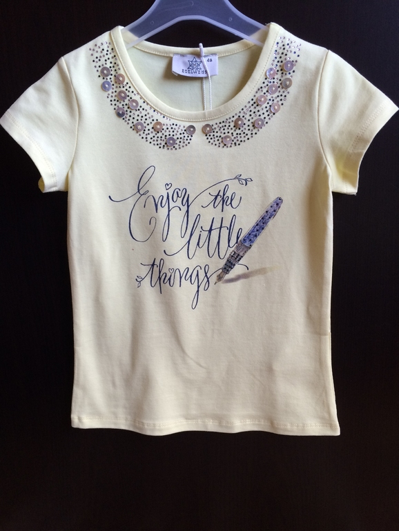 21. Футболка девочка цвет желтый арт. 10727 Размеры: 9 месяцев, 12 месяцев, 3 года, 4 года, 5 лет. Турция состав хлопок. Цена 750