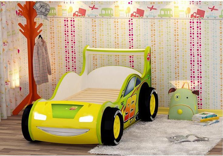 Мебель детская и не оченьКровать Молния 3D желтая Ред Ривер - стильная спортивная модель, дополненная светом фар,