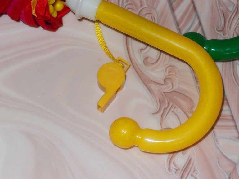 Детский зонт Радуга - 8 спиц. Закругленная ручка. Со свистком. Трость, полуавтомат. Порадует любого ребенка, который полюбит свой зонт. Купол - 90 см., диаметр - 80 см., длина - 60 см.