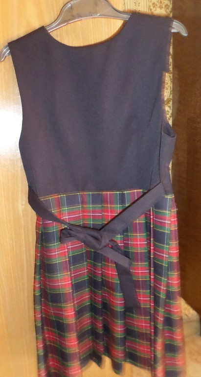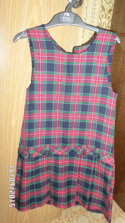 20). Сарафанчик шотландка клетка 128 ( маркировка)см,в отличном состоянии,цвет шот.клетки насыщенный на фото яркость света от вспышки, состав 50% шерсть, 50% полиэфир, 200 р.