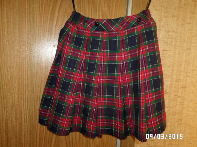 19)Юбочка шотландка клетка,на рост 122 (маркировка),в очень хорошем состоянии,нам не подошла, небольшая вставка впереди ,по бокам и сзади резинка,50% шерсть, 50% полиэфир 200 р.