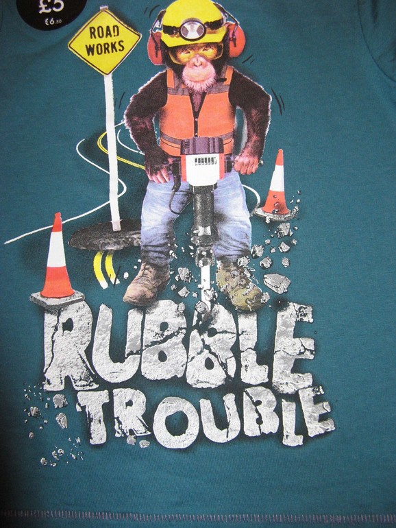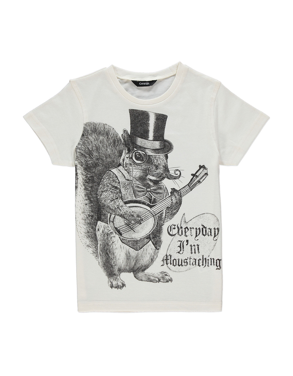 Футболка фирмы George. Молочного цвета, рисунок Белка в шляпе с усами и надпись впереди. 100% хлопок. Размер 6-7л (116-122), 7-8лет (122-128) 300руб