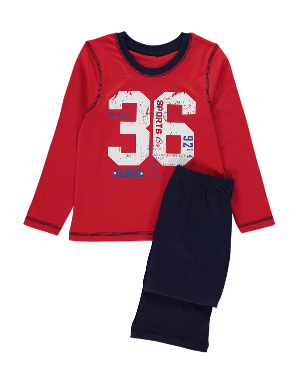 Пижама фирмы George. Брючки темно-синие + кофточка с длинным рукавом красная, впереди рисунок цифры и надписи . Состав 100% хлопок.
