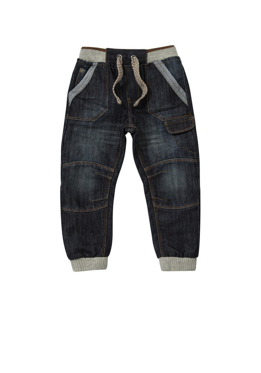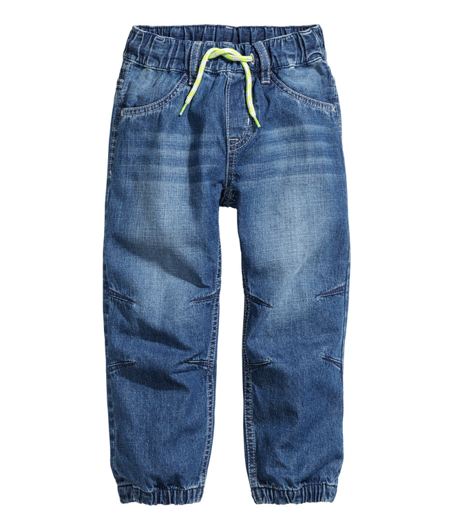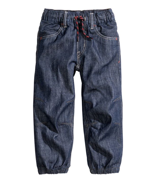 Джинсы синие тонкая джинса фирмы Н&М. 2 кармана-обманка впереди, 1 сзади, регулируются в поясе шнурком-утяжкой, штанины внизу нарезинке. Состав 100% хлопок. Размер 7-8л (122-128). 650руб