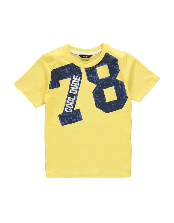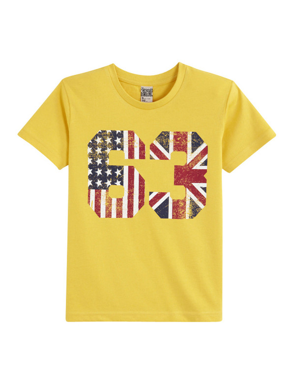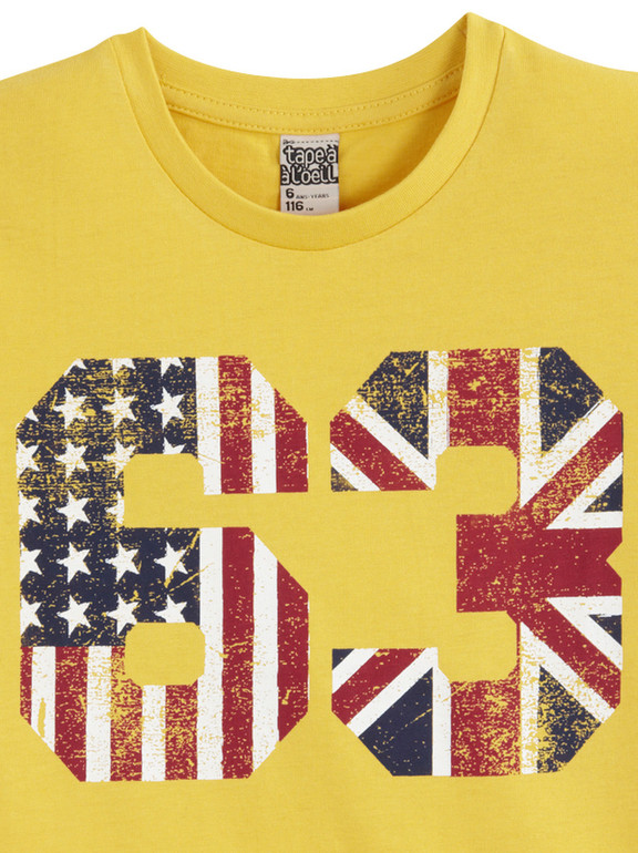 Яркая футболка фирмы t-a-o (Tape à l'oeil) Франция. Ярко-желтая, цифры впереди. 100% хлопок. Размер 6л (116), 8л (128) 350руб
