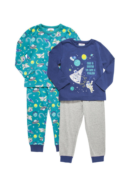 Пижамы "Космос" с длинным рукавом фирмы F&F. Яркий мягкий трикотаж, пояс на резинке, штанины внизу на резинке, состав 100% хлопок.