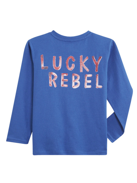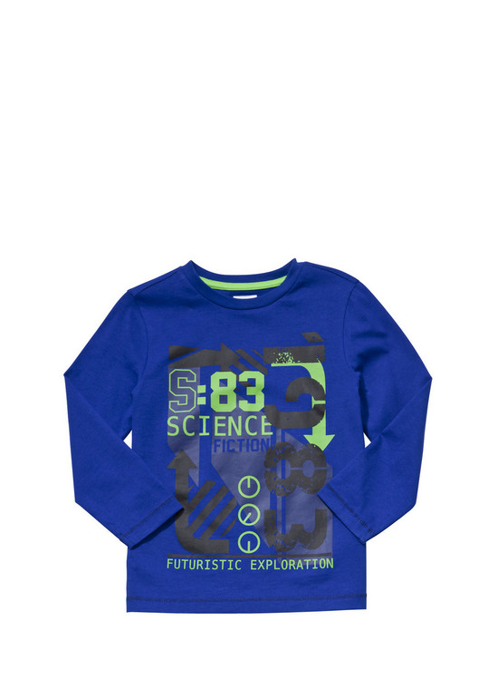 Кофточка с длинным рукавом фирмы t-a-o (Tape à l'oeil) Франция. ярко-синяя, впереди рисунок и надписи. 100% хлопок. Размер 6л (116), 350руб