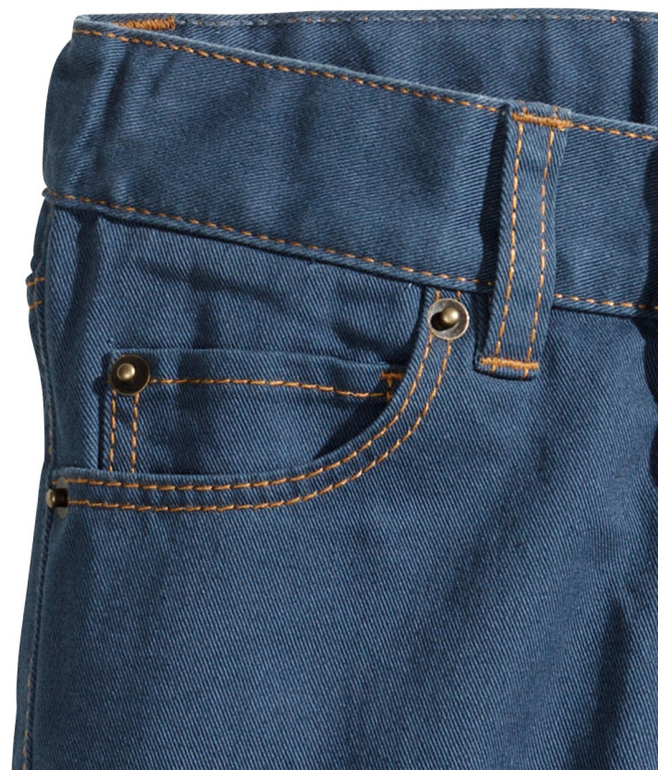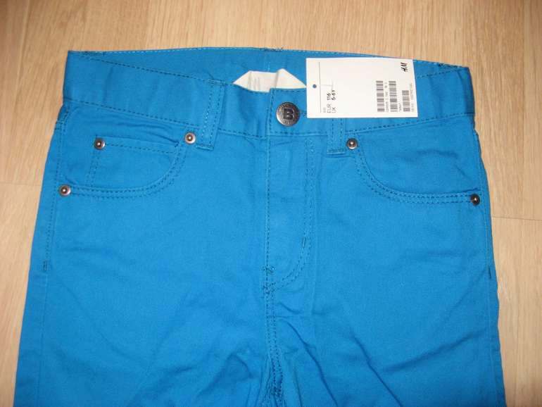 Брюки фирмы H&M. Хлопковая ткань ярко-голубого цвета , 3 кармана впереди, 2 сзади, застежка пуговица+молния, внутри резинка-утяжка по кругу. Состав 100% хлопок. Размер , 5-6г(110-116), 6-7 (116-122), 7-8л (122-128) 650руб
