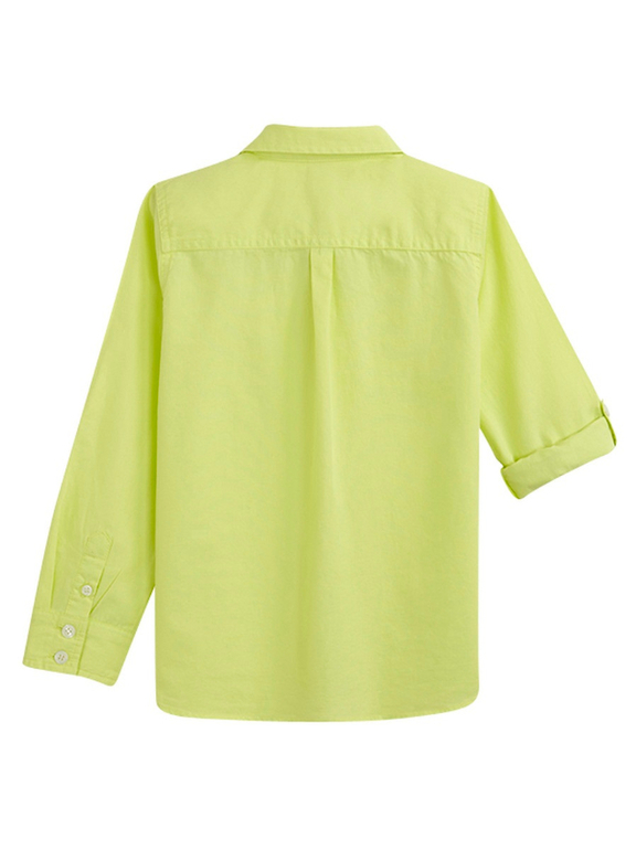 Рубашка с длинным рукавом фирмы t-a-o (Tape à l'oeil) Франция. Салатовая, рукава фиксируются на хлястик с пуговичкой в подвернутом виде. Состав 100% хлопок. Размеры 3г (96), 4г(104), 5л (110). 550руб.