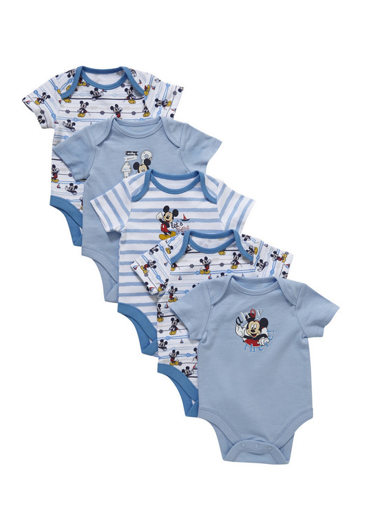 Белое с голубой полоской и Микки Маусом на груди, Голубое с Микки Мусом на груди, белое с голубой отделкой и Микки Маусами по всему боди