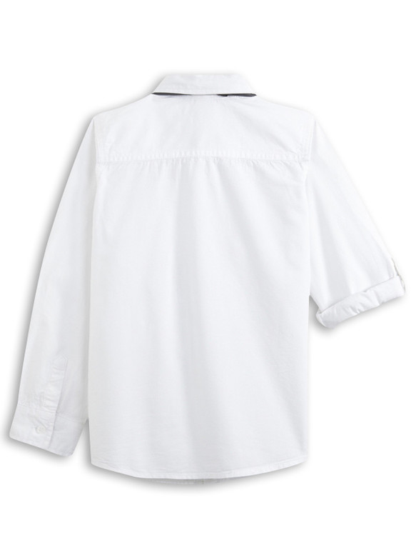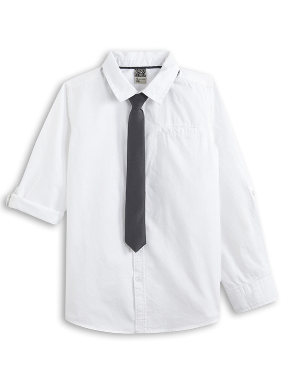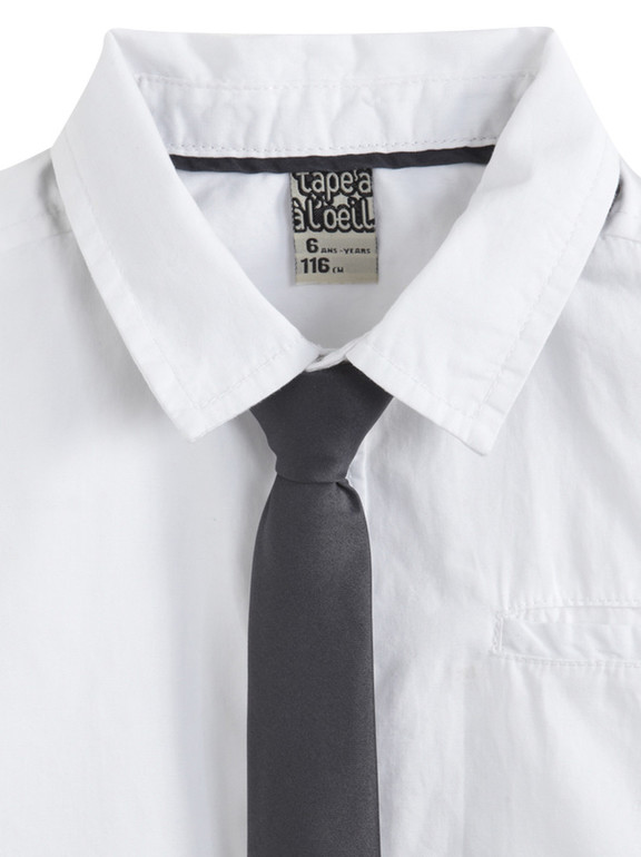 Рубашка с длинным рукавом и галстуком фирмы t-a-o (Tape à l'oeil) Франция. Белая, кармашек на груди, рукава фиксируются на хлястик с пуговичкой в подвернутом виде, в комплекте с черным галстуком - застегивается на липучку . Состав 100% хлопок. Размеры 3г(96), 4г(104), 5л (110), 6л (116), 8л (128) 650руб.