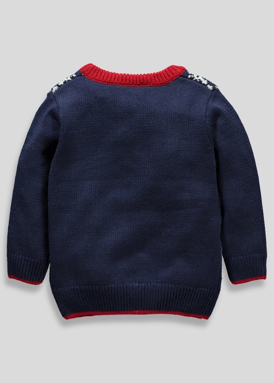 Джемпер вязаный темно-синий с молочными полосками фирмы George. Имитация кармана на груди и пододетой футболки, 3 пуговички по горловине. Состав 100% хлопок. Размер 7-8лет (122-128) 690руб