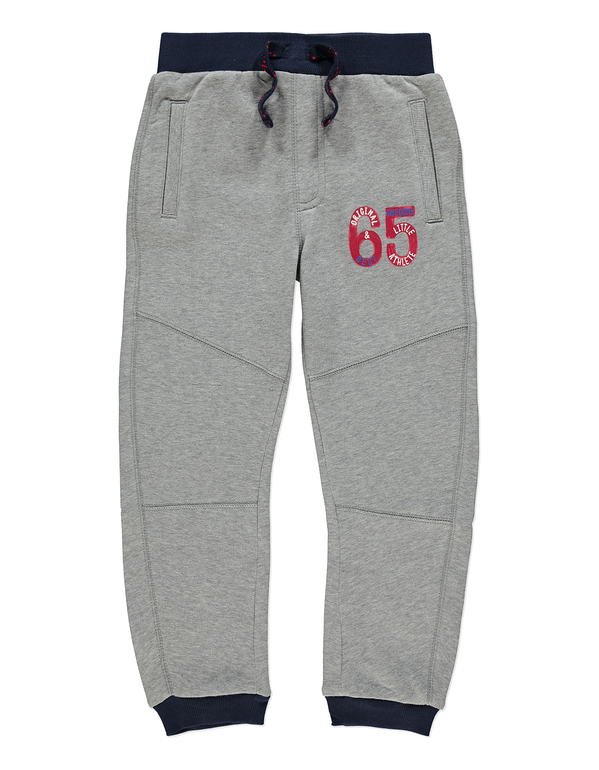 Брючки спортивные фирмы F&F. Серые с темно-серой отделкой, внутри с начесом, внизу штанины на манжете, 2 кармана по бокам, один карман с эмблемой сзади, шнурок-утяжка по кругу в поясе, впереди на штанине рисунок. Состав 60% хлопок, 40% полиэстер. Размер 5-6л (110-116), 6-7л (116-122) 500руб