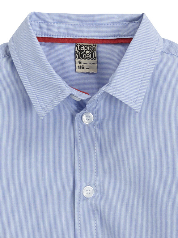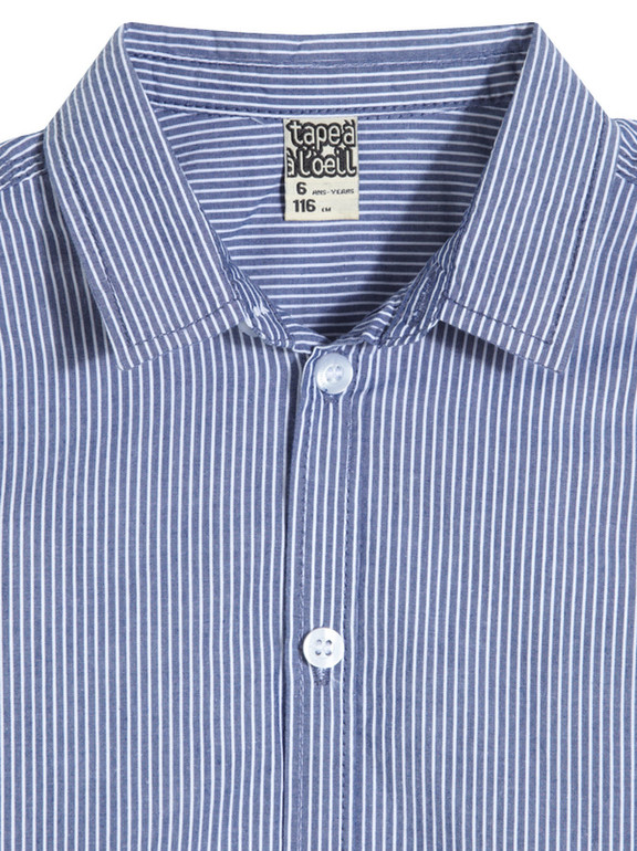 Рубашка с длинным рукавом фирмы t-a-o (Tape à l'oeil) Франция. Голубые, белые тоненькие полоски, кармашек на груди, . Состав 100% хлопок. Размер 3г (96см). 550руб.