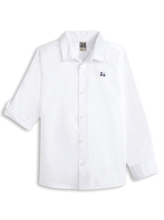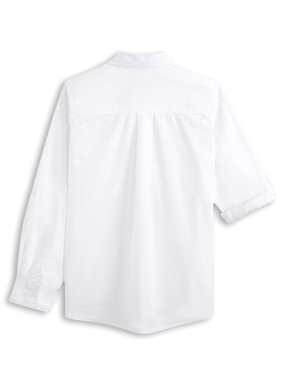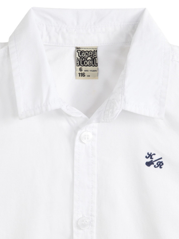 Рубашка с длинным рукавом фирмы t-a-o (Tape à l'oeil) Франция. Белая, рукава фиксируются на хлястик с пуговичкой в подвернутом виде, на груди вышивка . Состав 100% хлопок. Размеры 3г(96), 4г(104), 550руб.