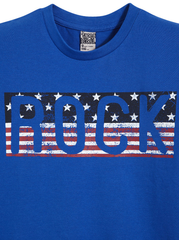 Яркая футболка фирмы t-a-o (Tape à l'oeil) Франция. Ярко-синяя, цифры впереди. 100% хлопок. Размер 6л (116), 8л (128) 350руб