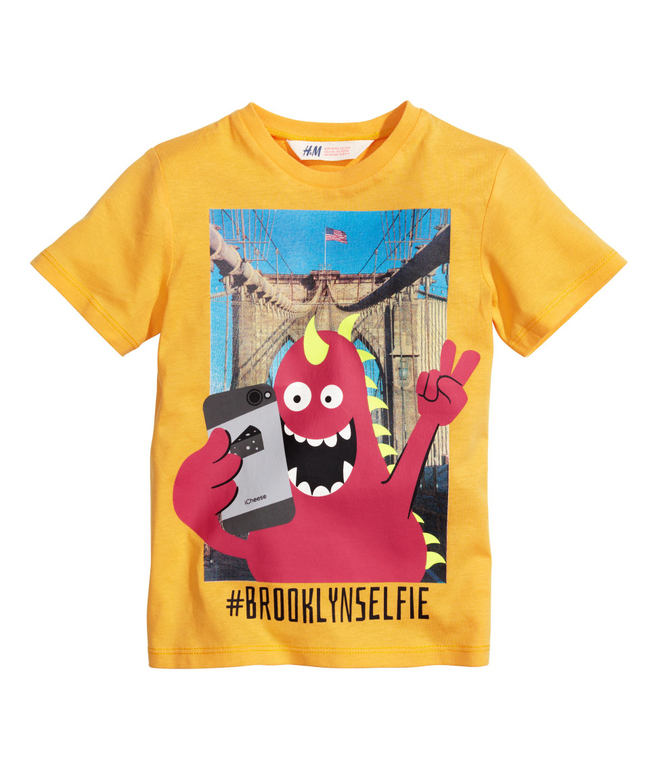 Футболка фирмы H&M. Оранжевая с ярким рисунком-наклейкой Монстрик впереди. Состав 100% хлопок. 6-8л (122-128) 350руб.