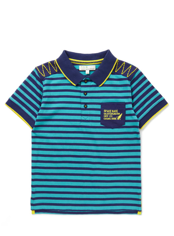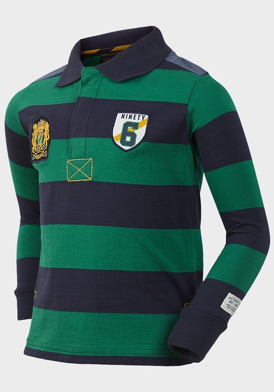 Кофта-поло фирмы Soul&Glory. Темно-синие/кремовые полоски, манжеты на рукавах, эмблемы на груди и рукаве, застегивается на груди на 3 пуговички, джинсовые погончики на плечах. Модель на стройных и обычных детишек. Состав 100% хлопок. Размер 7-8л (122-128), 550руб.