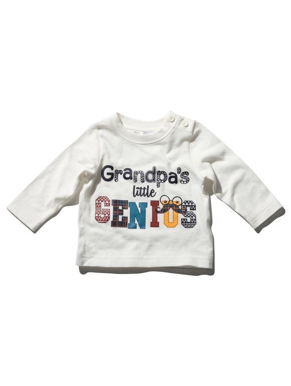Кофточка с длинным рукавом фирмы F&F. Молочного цвета, впереди надписи и рисунок машина. Состав 100% хлопок, размер 5-6л (110-116) 350руб