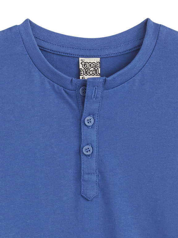 Кофточка с длинным рукавом фирмы t-a-o (Tape à l'oeil) Франция. Синяя (цвет насыщенно-синий, не такой бледный, как на фото), впереди застежка 3 пуговички, на спине надписи. 100% хлопок. Размер 8л (128) 380руб