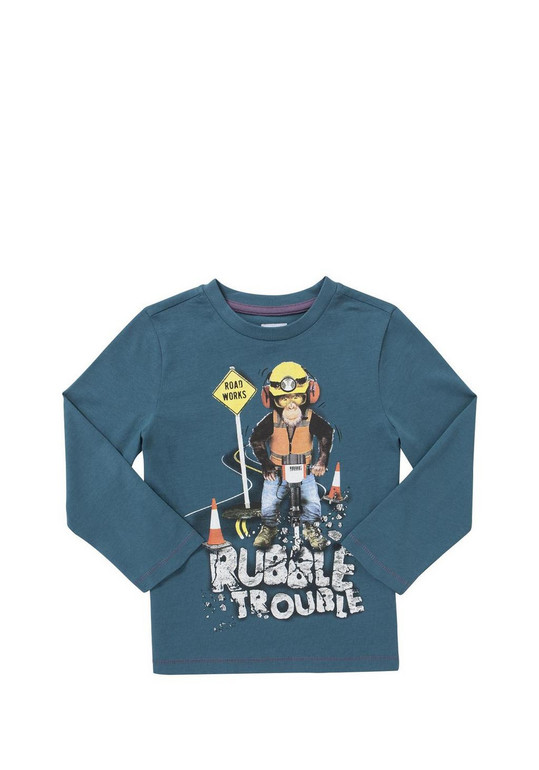 Кофточка с длинным рукавом фирмы F&F. Синяя, впереди надписи и рисунки. Состав 100% хлопок, размер 6-7л (116-122) 300руб