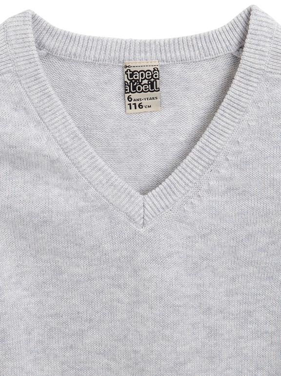 Жилет вязаный фирмы t-a-o (Tape à l'oeil) Франция. Светло-серый, состав 100% хлопок. Размеры 6(116), 8(128) . 390руб.