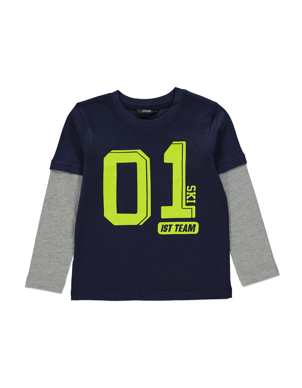 Кофточка с эффектом 2 в 1 фирмы F&F. Белая с серыми рукавами, впереди рисунок обезьяна и надпись.состав 100% хлопок. Размер 6-7л (116-122), 7-8л(122-128). 300руб
